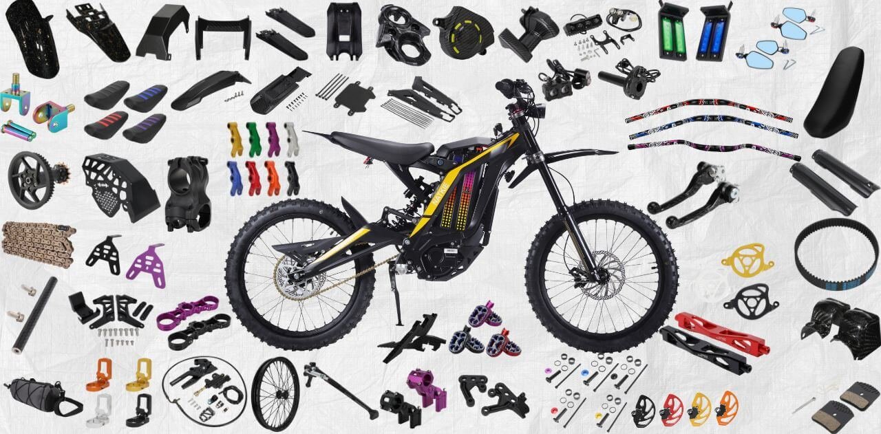 With 10,000+ SKUs and stable factory production, JFG supports surron parts sourcing, surron parts bulk, and worldwide delivery as a reliable surron parts exporter / distributor / dealer partner.